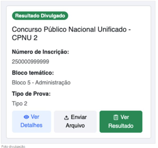 2 – Clique na opção “Minhas Inscrições”, localize o card referente à sua inscrição do CPNU 2 e clique no botão “Ver Resultado”: