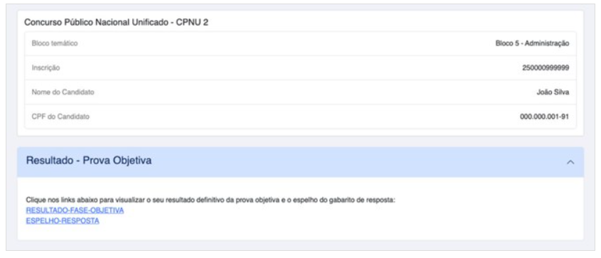 - Resultados individuais definitivos na prova objetiva.
