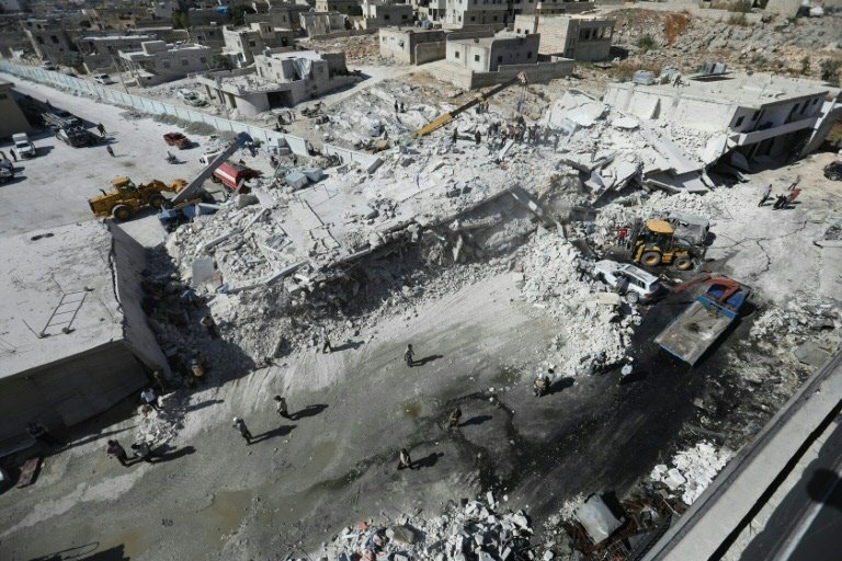 As equipes de emergência já conseguiram resgatar cinco sobreviventes, disse à AFP um membro dos Capacetes Brancos. Entre os mortos, há mulheres e crianças, completou a mesma fonte.