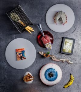 Na lista dos exemplos de irreverência na cozinha, o chef destaca o “Tongue Kiss” — “beijo de língua”, em tradução do inglês —, prato servido em uma peça de silicone que imita a língua humana. “A única maneira de comê-lo é, na verdade, ‘beijando-o de língua’. É um bom quebra-gelo para a maioria dos clientes”, brincou o chef.