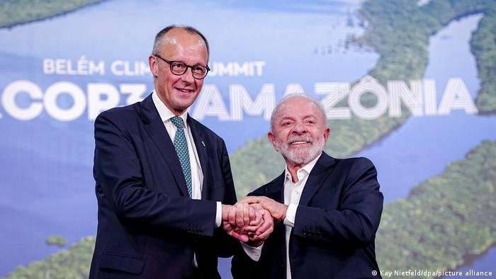 Na quinta-feira passada, em um discurso no Congresso Alemão do Comércio, Merz teceu um paralelo com o Brasil, citando sua visita a Belém dias antes, visando enaltecer as qualidades da Alemanha.