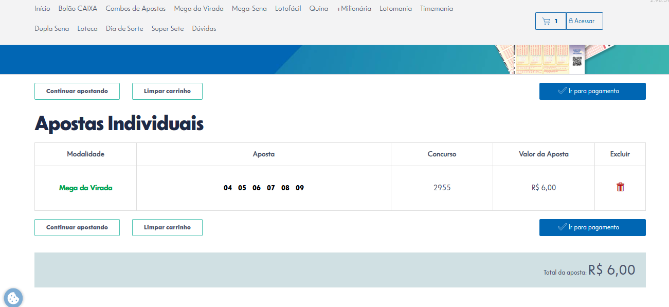 O pagamento pode ser realizado com cartão de crédito ou com a conta Caixa cadastrada. Após a confirmação, o sistema gera o comprovante digital. Esse registro fica disponível no histórico da conta e tem a mesma validade de um bilhete impresso adquirido em lotéricas físicas.