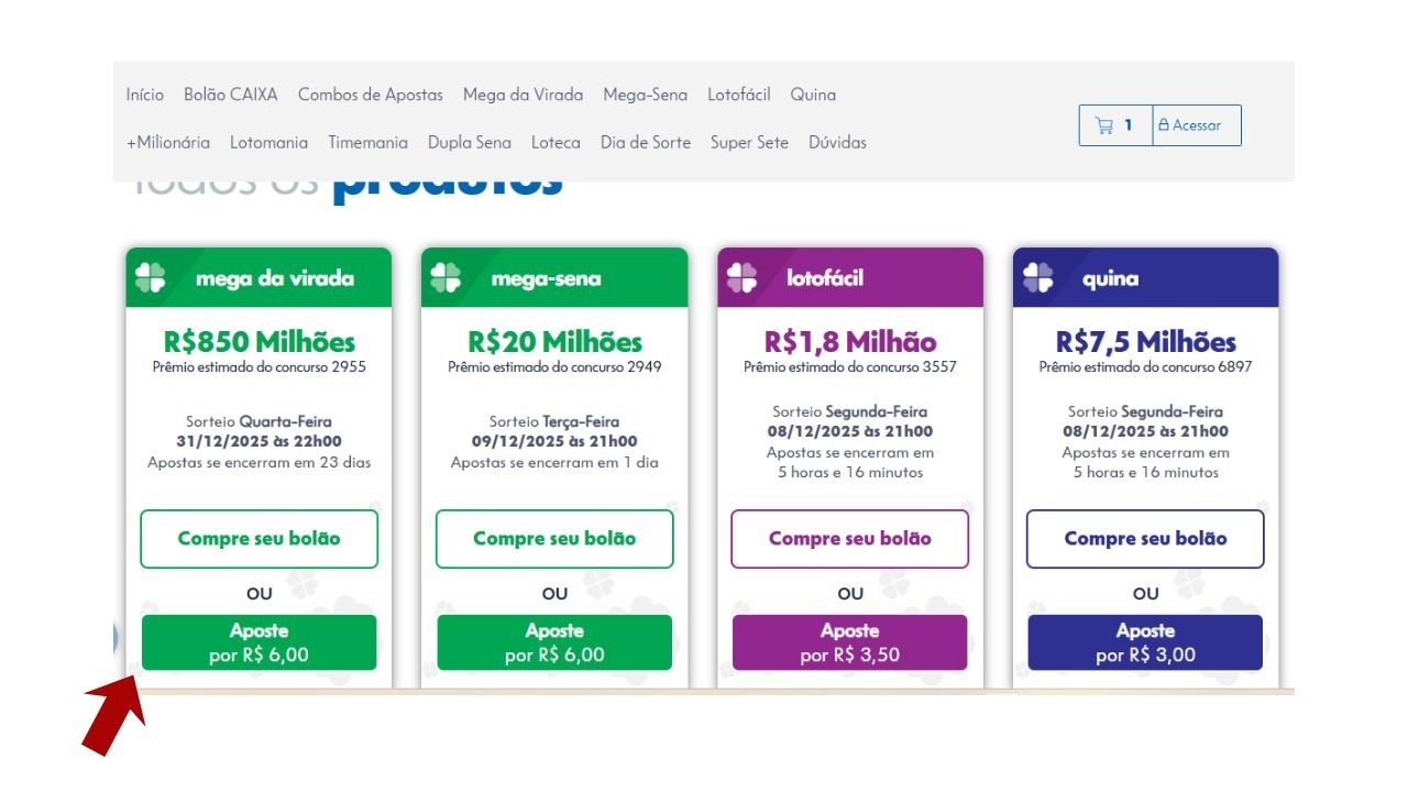 1. Acesse o portal Loterias Online da Caixa ou o app