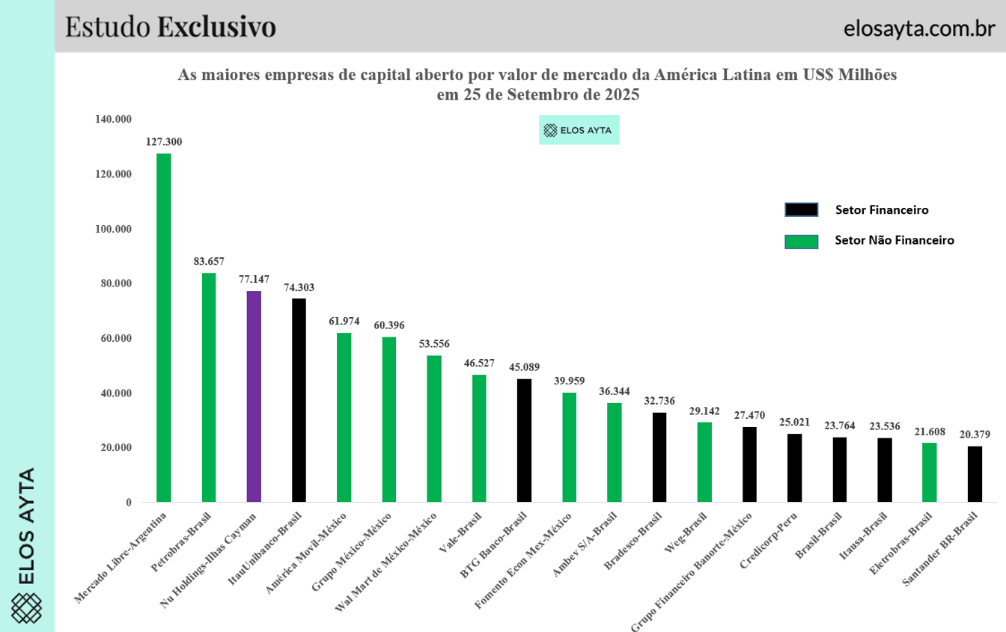 “A fotografia atual do setor financeiro latino-americano mostra um equilíbrio de forças em plena transformação. Em 2025, os bancos tradicionais ainda detêm peso relevante, dos 20 maiores grupos listados, nove são instituições financeiras, mas a natureza dessa liderança mudou. O protagonismo passou de quem tem a maior rede de agências ou a base de ativos mais robusta para quem consegue capturar a confiança dos investidores em torno de crescimento escalável e inovação contínua” diz a Elos Ayta sobre a liderança do Nubank dentre os bancos da América Latina.