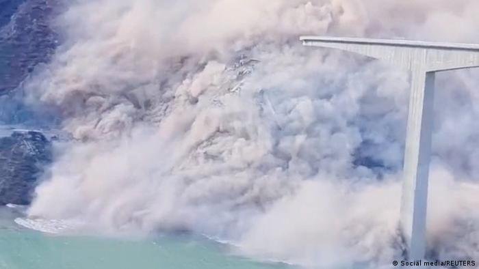 As autoridades explicaram ainda que a encosta da montanha próxima à ponte já havia começado a se deformar antes do desabamento.