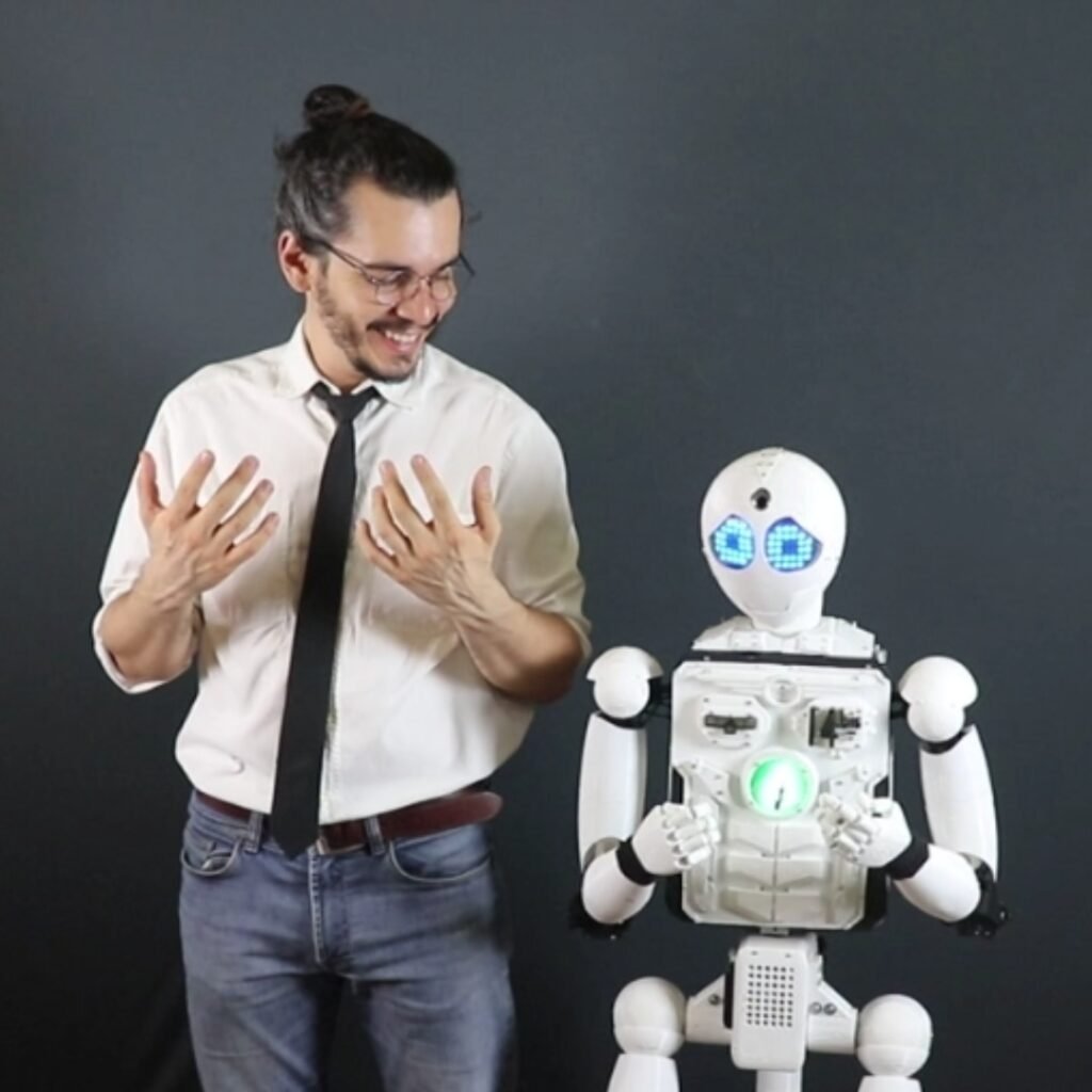 Ramos é o criador do primeiro robô humanoide do Brasil, o 14-Bis. Desde 2020, o professor é responsável pelo processo de desenvolvimento da máquina, de ponta a ponta, da construção ao algoritmo. O 14-Bis está em sua sexta versão e traz um diferencial: é sustentável, já que é operavel por meio de energia solar. “O 14-Bis é funcional, conta com inteligência artificial e é o único no Brasil com desempenho minimamente comparável a robôs internacionais”, explica.